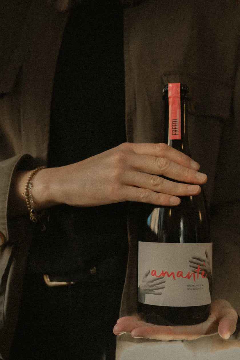 Amantè è uno Sparkling Tea analcolico 0.0% artigianale, realizzato da Freedl con una visione chiara: creare una bevanda elegante, fermentata e gastronomica, partendo dal tè e dal territorio.