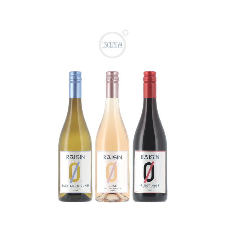 Raisin Sauvignon Blanc 0.0% – Bianco aromatico e minerale, con profumi di pesca e fiori bianchi.